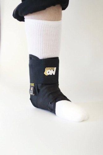 Game On Ankle Stabilizer Game On is a low profile, lace-up ankle brace that helps provide comfortable protection for the unstable ankle. The brace features the same high level of security and support you've come to trust from professional ankle taping without the costly time and expense. Figure-8 straps lock the calcaneus - helping control abnormal inversion and eversion. The brace is constructed of supportive ballistic nylon with a ventilated spacer fabric tongue and Achilles panel for added comfort. Dual 2" nylon figure-8 straps resist stretch for Continued support throughout activity. A 3" elastic circumferential strap provides added compression. Game On is indicated for treatment of modearate ankle sprains, strains, ankle instability and weakness, or to help prevent injury during high-risk activities. Brace fits left or right ankle and is low profile allowing wear with most shoes. Sizing: measurement is circumference fro base of heel around. XX-Small: 9"-10" #75-8020, X-Small: 10-11" #75-8021, Small: 11"-12" #75-8022, Medium: 12"-13" #75-8023, Large: 13"-14" #75-8024, X-Large: 14"-15": #75-8025, XX-Large: 15"-16" #75-8026, XXX-Large: 16"+ #75-8027