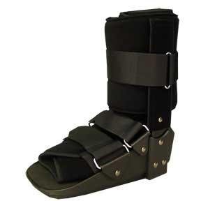 Anklizer Low Ankle Walker with fixed ankle is designed to provide support and protection for injuries such as stress fractures, diabetic ulcers and post op bunion surgery. Includes a deluxe foam liner with ultra plush foam and a soft inner fabric for superior comfort. Generous cut liner accomodates a larger range of calf sizes. Liner features include a contoured design for a more anatomical fit, extra padding at the achilles and heel area for comfort and no seam at the inside of heel area. Wider footbed provides a more comfortable tit. Lightweight design includes metal reinforced uprights for greater strength. Lightweight, low profile, continuous arching rocker design promotes a smooth, energy conserving gait. Additional strap provided for padding to the ankle. Complete application instructions included. LARGE size fits mens shoe size 10.5 and up and Womens shoe size 10.5 and up. Support weighs under 3 pounds. Overall height is 14 inches.
